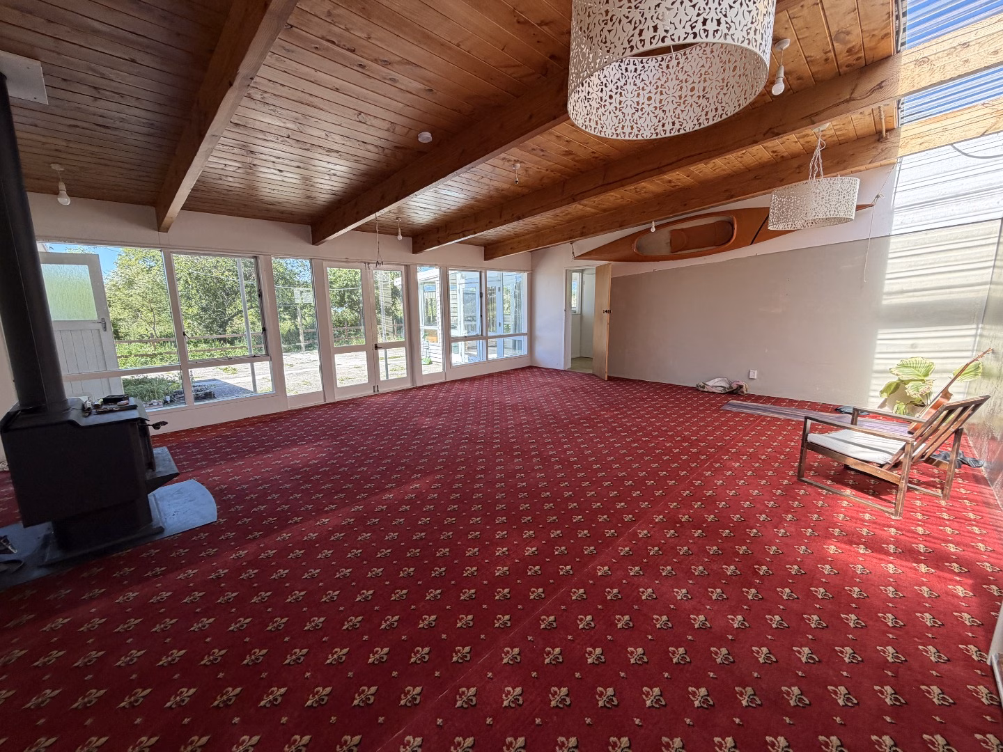 Inside, you’ll find an expansive open-plan living area with high timber ceilings, beautiful natural light and a cosy wood burner — the ideal space for relaxing. The large sunroom offers additional living flexibility, making it the perfect spot for a morning coffee, crafts, or simply soaking up the warmth year-round.