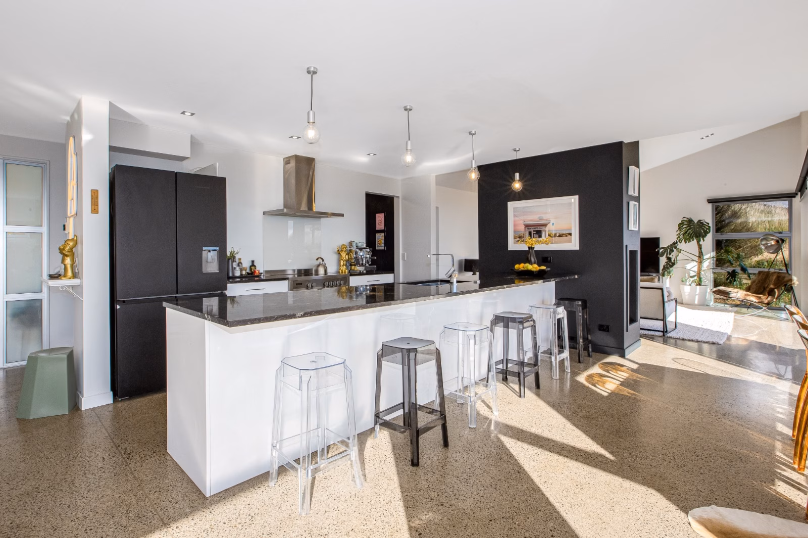• Separate living space with wood-burner fireplace for added ambience and polished concrete floors throughout.