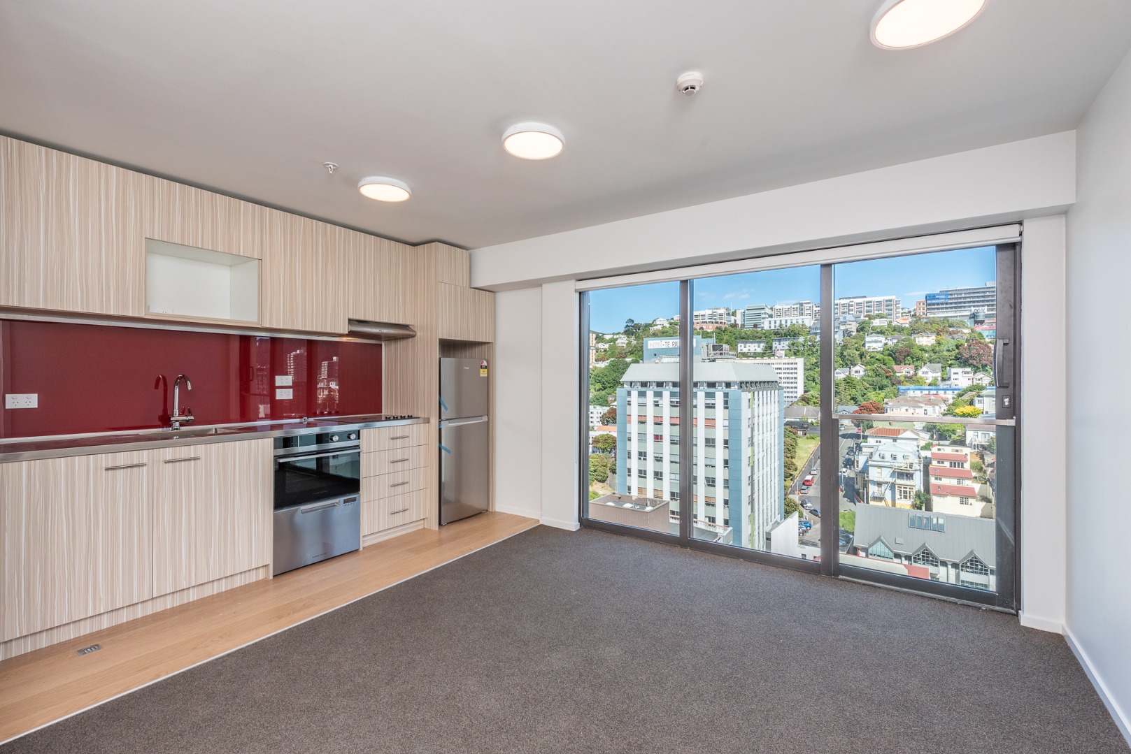- Open-plan kitchen, living and dining