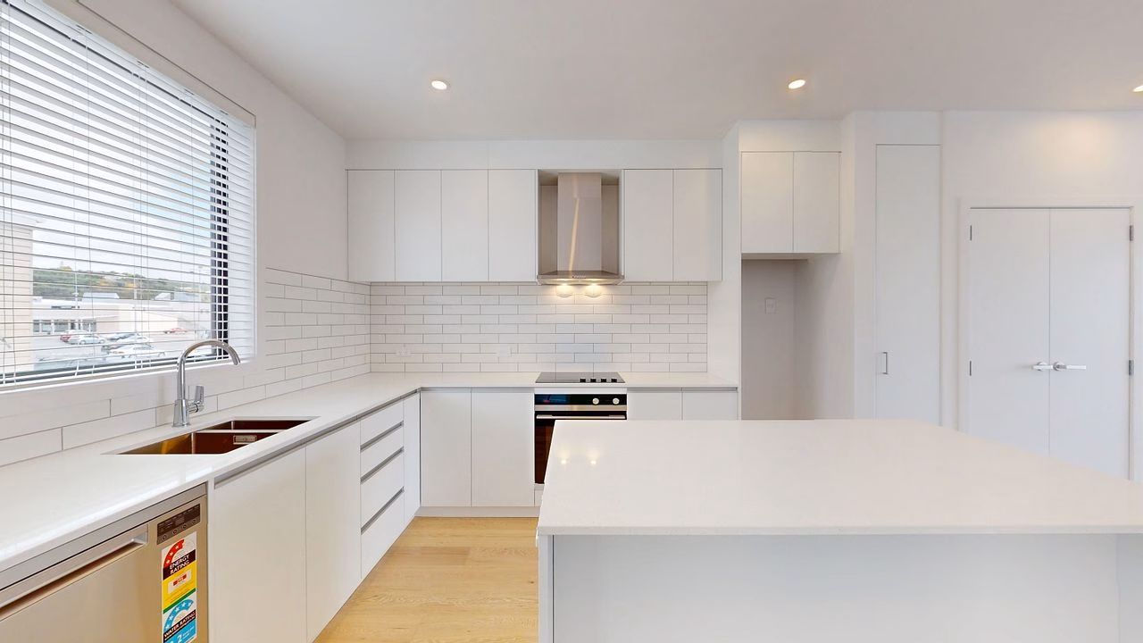 Dishwasher, under bench oven, cook top, rangehood, heat pump