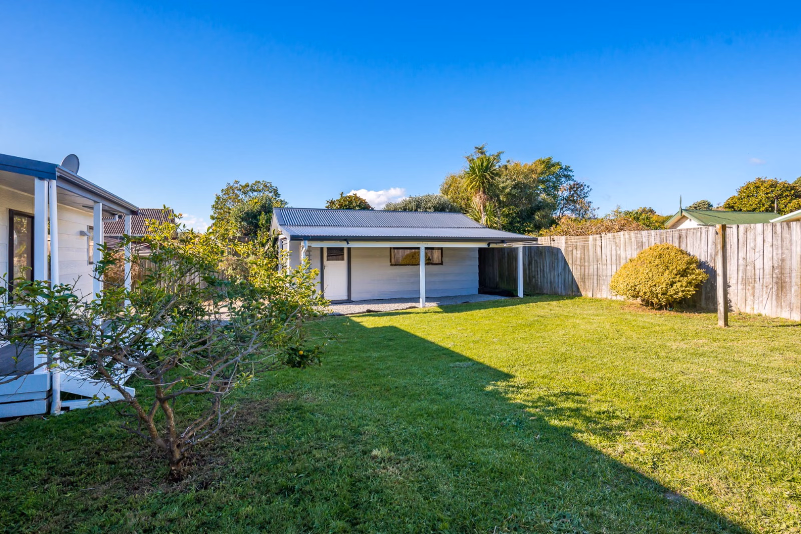 The backyard is the perfect size, boasting plenty of space for growing and busy families and with lawns included as part of the tenancy