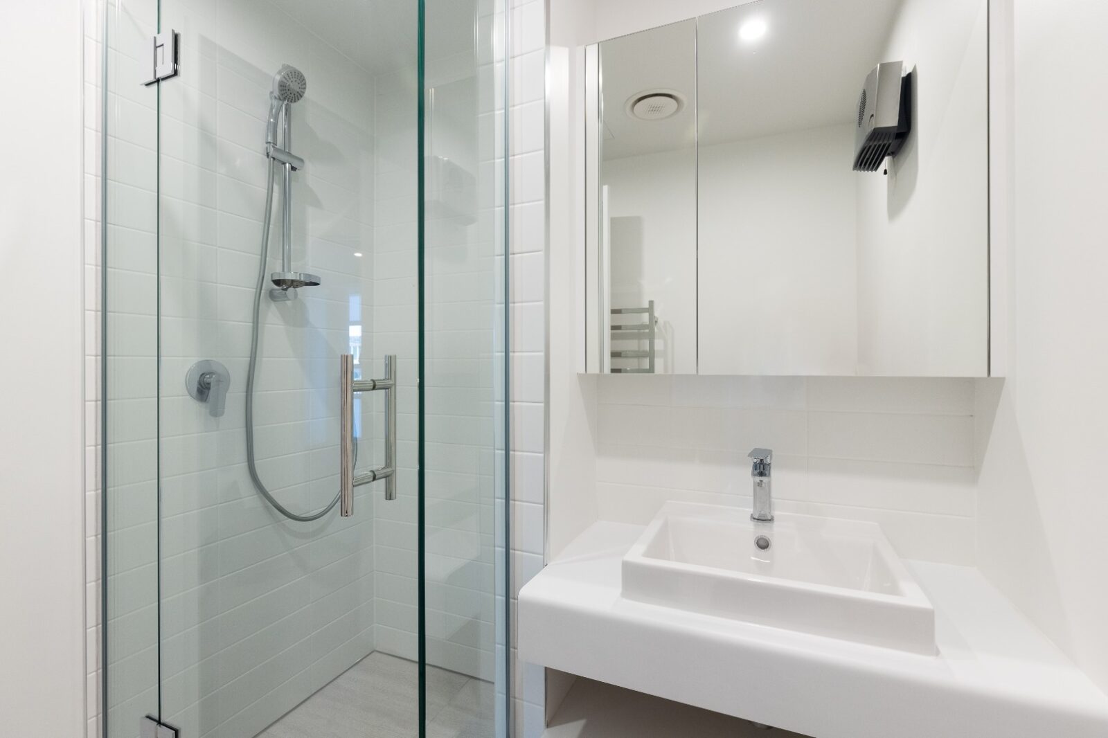 – Modern tiled bathroom with feature vanity